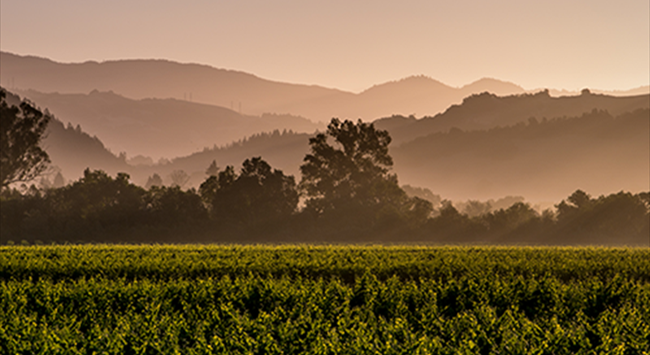 由于距離太平洋海岸線僅60英里,索諾瑪縣在氣候上受海洋影響頗大。產區(qū)內氣候總體溫和且穩(wěn)定,很少出現降雪和冰雹天氣,加之來自海洋的涼爽海霧對產區(qū)內溫度起到調節(jié)作用,因而十分有利于葡萄的順利生長和酸度積累。這里白天的平均溫度為舒適的71℉(約21.6℃),即使是最為炎熱的夏季也不會超過84℉(約28.9℃),而夜晚的溫度則大部分時候在40℉(約4.4℃)左右,這意味著,在葡萄生長關鍵的開花期不會受到霜凍災害的影響。到了秋季采收前,天氣通常溫和且少雨,為順利采收創(chuàng)造了良好的條件。