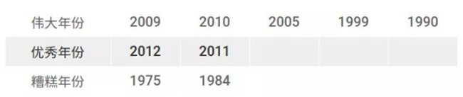 無論在左岸還是右岸,2009、2005、2010和2000年都是毫無異議的經(jīng)典年份,是過去30多年以來的最佳年份。