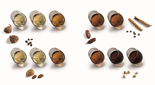 在陳釀階段,氧氣的作用和參與程度則因酒而異。對于使用惰性容器(如不銹鋼發(fā)酵罐)陳釀、希望保留品種本身特點(diǎn)的葡萄酒而言,氧氣會造成不利影響,需能少則少。對于使用橡木桶陳釀的葡萄酒來說,少量的氧氣大有裨益,它們可以通過木桶上的細(xì)小孔隙進(jìn)入桶內(nèi)并與酒液發(fā)生輕微的氧化反應(yīng),從而柔化葡萄酒的單寧,使酒液的口感更為細(xì)膩柔順,同時(shí)使其發(fā)展出更加復(fù)雜多樣的風(fēng)味。對于西班牙雪莉酒(Sherry)和汝拉(Jura)黃酒(Vin Jaune)這樣的氧化型葡萄酒來說,氧氣的重要性不言而喻,釀酒師通常刻意采用未裝滿的釀酒容器來陳釀這些葡萄酒,以便讓更多氧氣進(jìn)入桶內(nèi),使酒液發(fā)展出焦糖、堅(jiān)果、咖啡、太妃糖等獨(dú)特的氧化風(fēng)味。