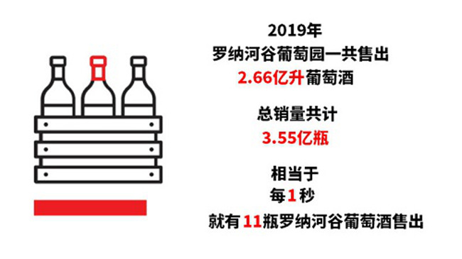 2019年,羅納河谷葡萄園一共售出2.66億升葡萄酒,總銷量共計3.55億瓶。這樣計算下來,在2019年里的每一秒,都有11瓶羅納河谷葡萄酒售出,消費者對羅納河谷葡萄酒的喜愛與信賴可見一斑。