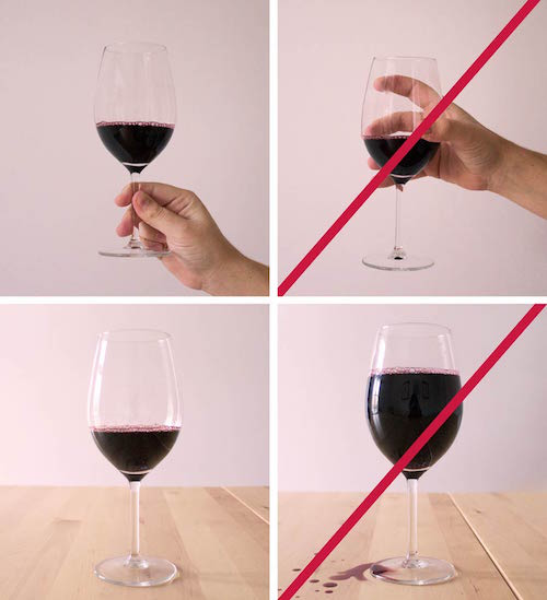 嚴格說來,葡萄酒持杯時,應(yīng)該用手指握住杯柱或杯底座,如果直接手握杯肚,由于手溫高于侍酒溫度,會導致酒液升溫,從而影響口感。
