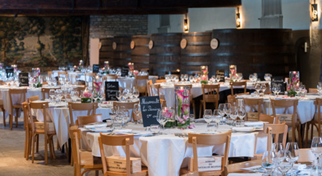 在伯恩濟貧院拍賣會后的星期一,受邀客人便會聚集到默爾索酒莊(Chateau de Meursault)的酒窖里,參加這場從正午延續(xù)到傍晚的歡樂盛宴。各個酒莊莊主和客人都會帶上自己的珍藏勃艮第好酒,相互分享。因為這一做法,人們常認為默爾索午宴是BYOB(Bring Your Own Bottle,帶上你的酒)聚會的原型。