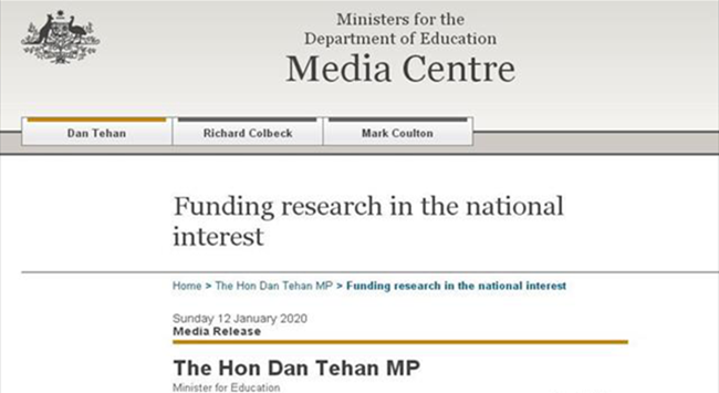 聯(lián)邦教育部官網(wǎng)12日報道,聯(lián)邦教育部長特翰(Dan Tehan)宣布,政府將通過澳洲研究委員會(ARC)為20個新的研究項目提供950萬元的資金。獲資助的項目包括:蒙納士大學提出的調(diào)查確定葡萄酒地理標志所需的標準、證據(jù)和程序,這些標準、證據(jù)和程序用于貿(mào)易協(xié)定和法律糾紛。澳洲天主教大學提出的開發(fā)一個在線工具,為數(shù)字社會中的兒童識別和分享最佳實踐,包括數(shù)字媒體生產(chǎn)、網(wǎng)絡安全教育、數(shù)字游戲和數(shù)字育兒等領域的新資源、材料和項目。