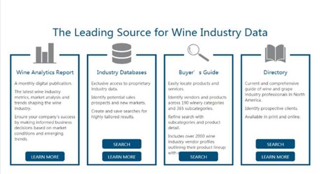 葡萄酒零售商和制造商將有更廣泛的渠道了解葡萄酒的種類,與尼爾森的季度報(bào)告的季度報(bào)告相結(jié)合,了解細(xì)分市場(chǎng)的規(guī)模和趨勢(shì),按價(jià)格層次、原產(chǎn)地、品種和種類劃分的零售計(jì)量數(shù)據(jù)、目的地市場(chǎng)。用戶將有能力訪問類別和分部數(shù)據(jù)尼爾森和 DTC裝運(yùn)數(shù)據(jù)部分或整體均可,聯(lián)合方案中的DTC裝運(yùn)包括在酒廠的網(wǎng)上訂單,網(wǎng)站、酒廠葡萄酒俱樂部發(fā)貨給他們的成員,品酒室采購(gòu)發(fā)貨到根據(jù)酒莊所在地區(qū)、年度酒莊產(chǎn)量和目的地追蹤銷售情況,貨物種類、品種和價(jià)格。