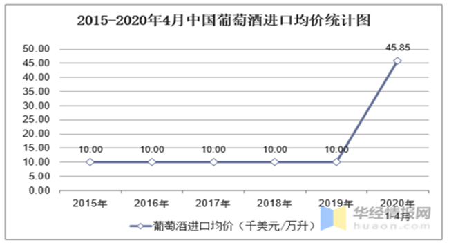 2015-2020年4月中國葡萄酒進(jìn)口均價(jià)統(tǒng)計(jì)圖