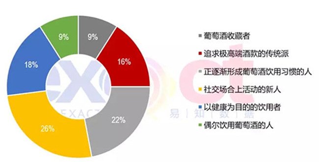 葡萄酒消費(fèi)者根據(jù)消費(fèi)偏好及飲用習(xí)慣可分為六類人群,包括葡萄酒收藏者、追求極高端酒款的傳統(tǒng)派、正逐漸行程葡萄酒飲用習(xí)慣的人等。