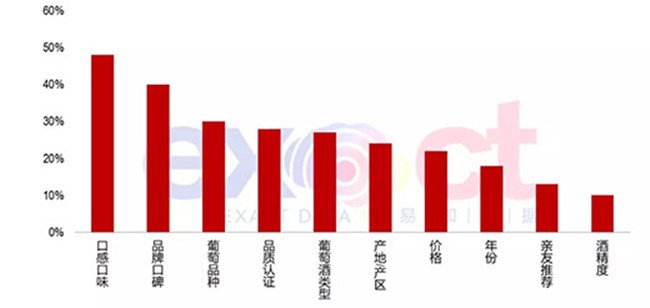 數(shù)據(jù)顯示,消費(fèi)更愿意跟隨內(nèi)心,為個(gè)人喜好買單,口感口味(48%)超過(guò)品牌口碑(40%)和價(jià)格(22%)成為排名第一的影響購(gòu)買因素,可見(jiàn)消費(fèi)者在選購(gòu)葡萄酒時(shí)趨于理性。