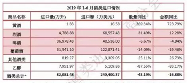8月12日,中國食品土畜進(jìn)出口商會酒類進(jìn)出口商分會公布2019年1-6月酒類統(tǒng)計數(shù)據(jù),數(shù)據(jù)顯示,2019年上半年,進(jìn)口葡萄酒仍處低位,進(jìn)口量3.1億升,降幅進(jìn)一步收窄3%,進(jìn)口額12.3億美元,降幅基本持平。烈酒方面呈現(xiàn)逆市飄紅,進(jìn)口量實現(xiàn)超三成增長。