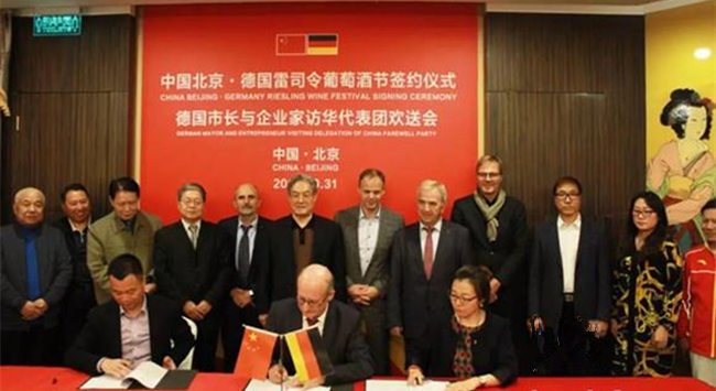 近日,德國市長與企業家訪華團一行在圓滿完成了北京考察和調研工作后,來到王府井全聚德紫云花廳,就“德國雷司令葡萄酒節”落戶北京相關事宜進行了座談,會后中德雙方代表還舉行了“德國雷司令葡萄酒節”簽約儀式。...